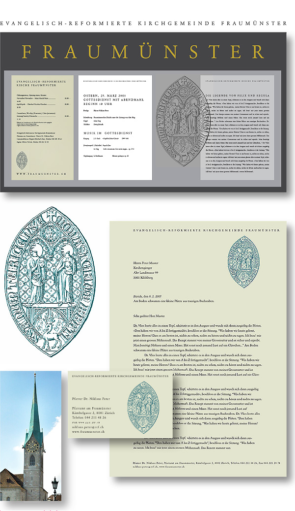 Ein Auftrag mit ewiger Wirkung – Der Renovation vom «Fraumünster» folgt die Beschriftung, dann das CD der Kirchenpflege.