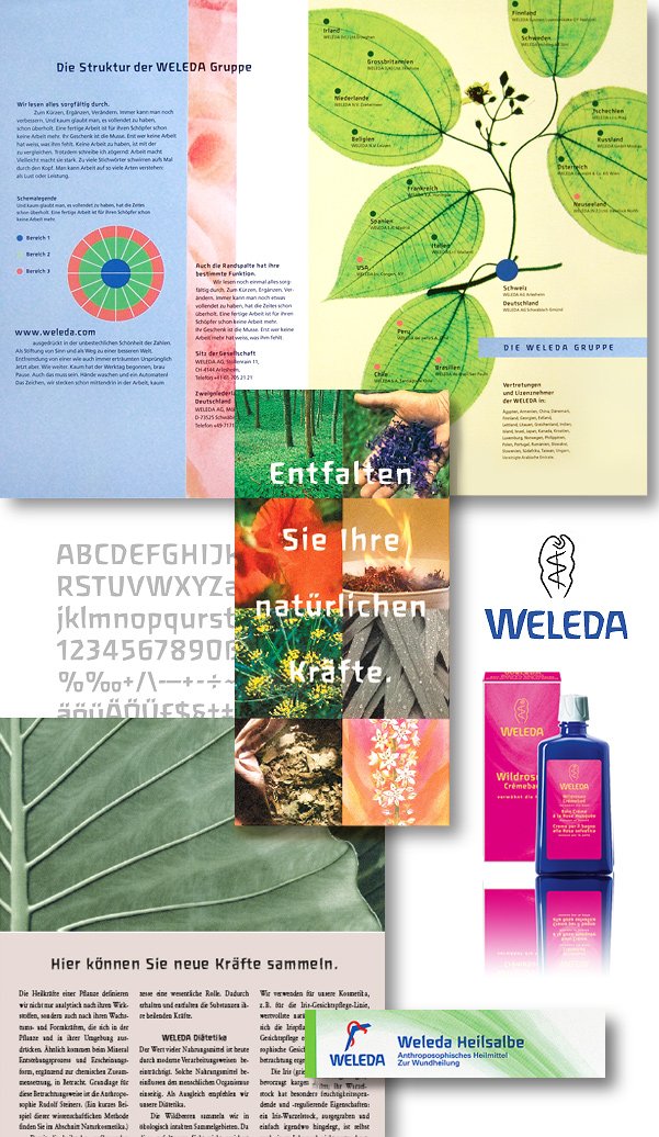 Unserem Weleda-Fontdesign folgen Produkte-Re-Design, dann die Renovation aller Basisauftritte; später der Gruppen-Auftritt.